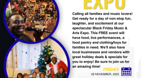 Get ready for a day of non-stop fun, laughter, and excitement at our spectacular Black Friday Music & Arts Expo. This FREE event will have food, live performances, a food pantry and clothing/toys for families in need. We'll also have local businesses and vendors with great holiday deals & specials for you to enjoy! Be sure to join us for an amazing time! -