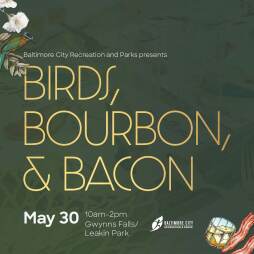 Back for its 4th year! This one-of-a-kind morning starts with an expert-guided birdwatching tour through Gwynns Falls/Leakin Park, then settles into a curated bourbon tasting paired with savory bacon and brunch. A perfect spring outing for food lovers and nature enthusiasts alike.