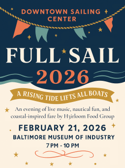 Full Sail: A Rising Tide Lifts All Boats is an inaugural winter fundraising celebration benefiting the Downtown Sailing Center (DSC), a Baltimore-based nonprofit guided by the mission Sailing is for Everyone. Founded in 1994 on the Inner Harbor, DSC is a U.S. Sailing–accredited organization that removes barriers of cost, access, and representation through inclusive sailing programs for youth, adults, and individuals with disabilities. Through hands-on experiences on the water, participants discover the transformative effect of moving in concert with the wind, leaving with lifted spirits and lasting confidence that shapes not only the course of a boat, but the course of a life. Held February 21 at the Baltimore Museum of Industry, Full Sail will bring together community leaders and supporters for an evening of food, drink, music, and storytelling in support of equitable access to Baltimore’s waterfront.