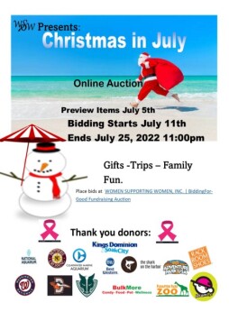 Starting on July 11, 2022, WOMEN SUPPORTING WOMEN, INC. will be auctioning off a number of fun and unique items to bid on to raise money for our organization.