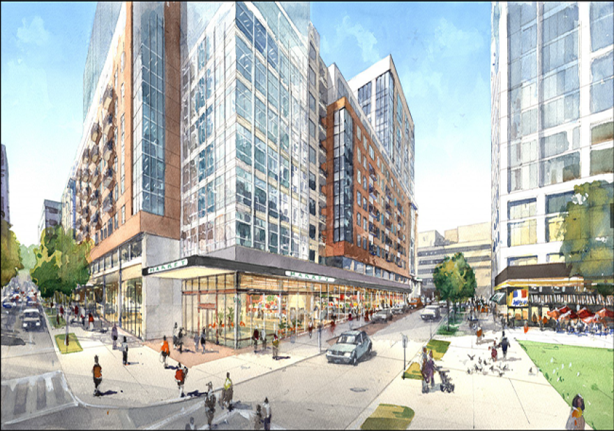 But Gibbons said they need around $43 million in public funding to get things moving. $26.5 million would come from tax credits the developer is eligible for and would get up front rather than later. The remaining $16.4 million would be a grant tied to a hotel tax the county will collect down the road. Plans for Towson Row include a hotel, as well as retail stores, offices, apartments and student housing.