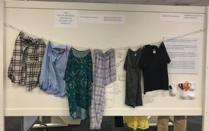 “What Were You Wearing? Weaving a New Narrative” is an installation revealing pervasive cultural attitudes about assault while working to change those attitudes. Molly Cohen, a theatre artist and graduate of the Department of Theatre Arts at Towson University, talks about the installation. This project is funded by a grant from Maryland Humanities to Towson University. We would like to reiterate that the subject of the segment is a humanities project about sexual assault.