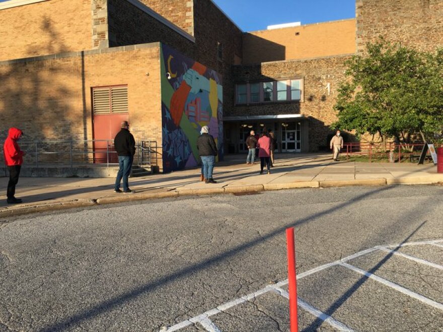 On the Record producer Melissa Gerr was at the Carver Vocational-Technical High School voting center in West Baltimore Tuesday morning. She said there were about 100 people in line before the polls opened at 7 a.m. and there's been a steady stream since.